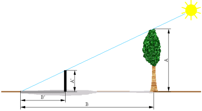 Ուղղաձիգ՝ 1.5 մ բարձրությամբ խողովակի ստվերի երկարությունը 0.8 մ է: Նրա մոտ գտնվող ծառի ստվերի երկարությունը 4 անգամ գերազանցում է խողովակի բարձրությանը: Որքա՞ն է ծառի բարձրությունը: